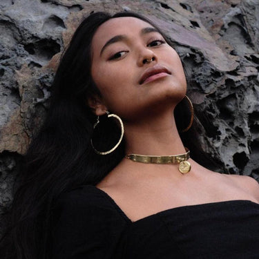 The Awaken Earring is a striking and meaningful piece, expertly crafted from high-quality Italian brass, with a stunning hand hammered finish.