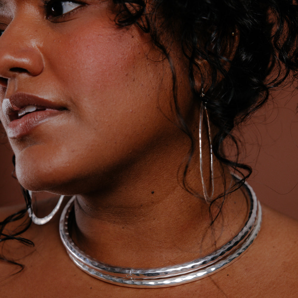 The Large Silver Ruhani Choker – Fine is part of the extended fit sizing of our viral Ruhani range, a hand-hammered evolution of the iconic Alchemy silhouette.