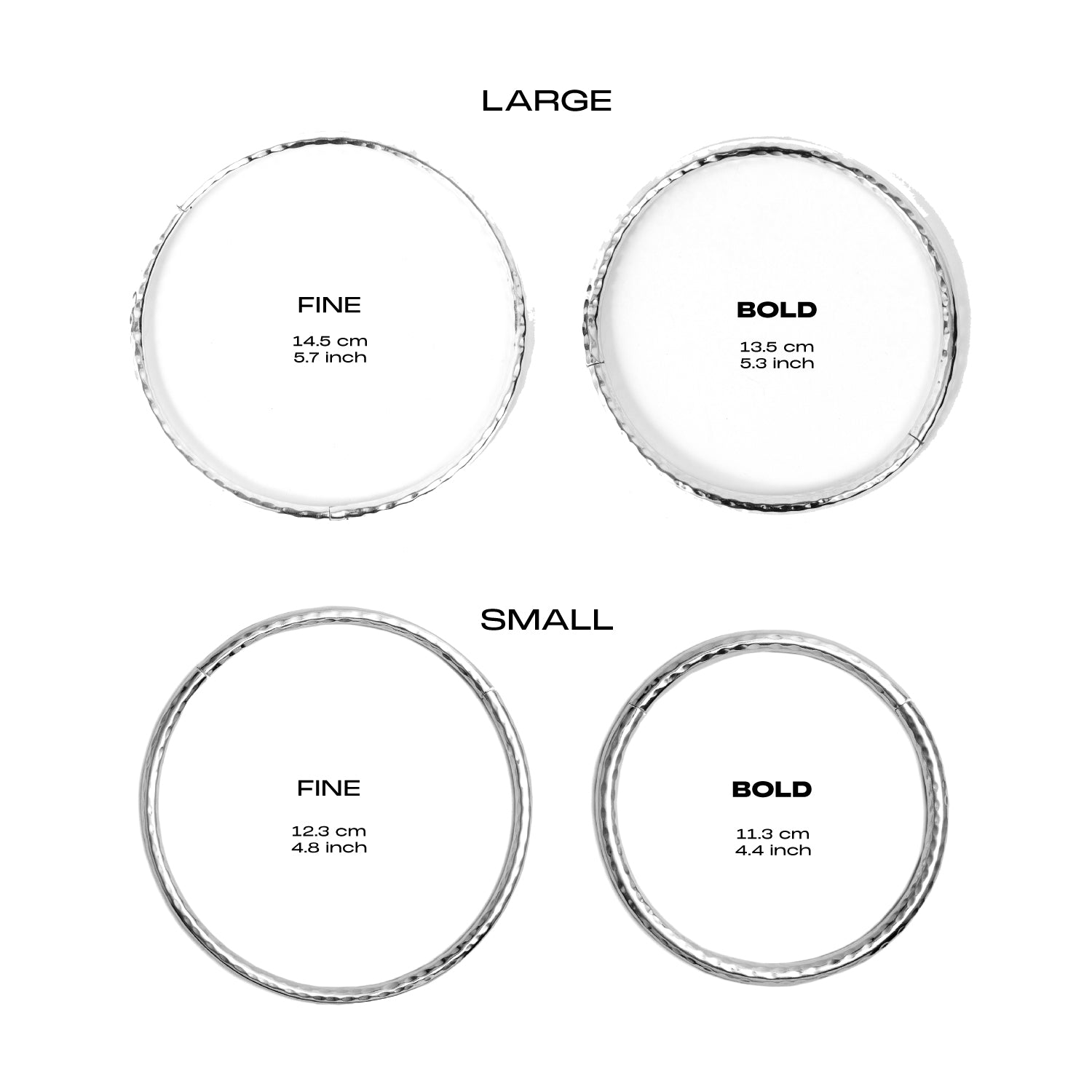 To achieve our signature stacked choker look just add one of each of our bold and fine chokers both either in small, or large, to your cart.